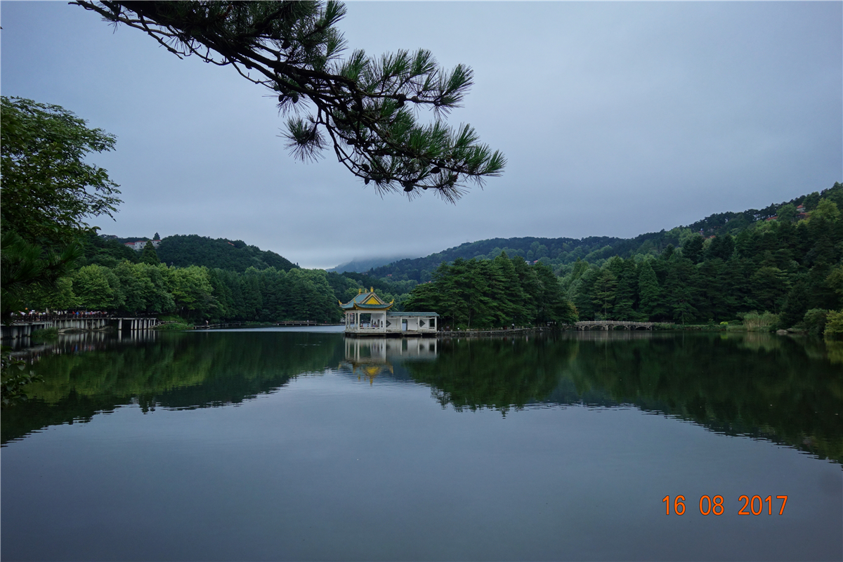 Following the tour guide's steps, we first came to Hanpokou, which has different beautiful sceneries described as "like a dream in spring, like a dripping green in summer, like being intoxicated in autumn, and like jade in winter". Here, we could overlook Poyang Lake, the largest freshwater lake in China, and at the same time, have a distant view of Hanyang Peak, the highest peak of Lushan Mountain. Unfortunately, the weather wasn't favorable, and we could only indulge in the hazy and misty rain.