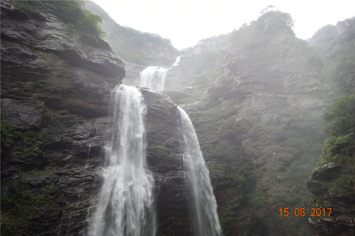 Then we moved to Sandiequan Waterfall, the first waterfall of Lushan Mountain, which has the imposing manner of a jade dragon galloping down. The waterfall passes through three levels of steep cliffs, and the stream cascades down in three tiers, with a drop of up to 155 meters. After everyone reached the bottom, they experienced the majestic momentum of "The waterfall plunges three thousand feet straight down, as if the Milky Way were falling from the sky" in person.